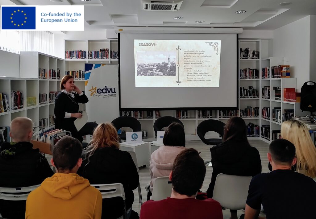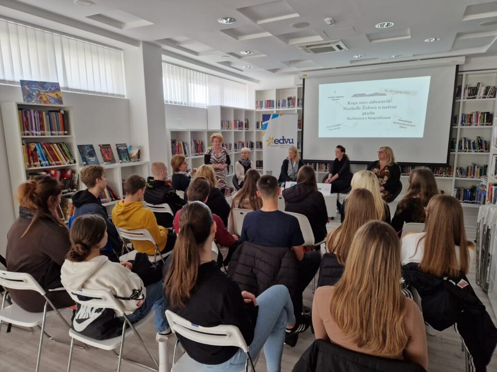 Dana 19.04.2023. Europski dom Vukovar i Documenta Zagreb u suradnji s Gradskom knjižnicom Vukovar proveli su edukativnu radionicu „Rad na biografijama“ za učenike 1. i 2. razreda Gimnazije Vukovar.