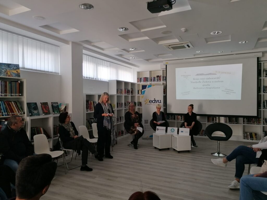 Dana 20.04.2023. Europski dom Vukovar i Documenta Zagreb u suradnji s Gradskom knjižnicom Vukovar organizirali su radionicu o radu na biografija za osobe koje rade s mladima i druge društvene dionike. U radionici su sudjelovale osobe iz različitih područja: predstavnici Židovske općine Osijek, predstavnica Gradskog muzeja Vukovar, profesori Gimnazije Vukovar, mladi volonteri, umirovljenici i drugi zainteresirani građani.