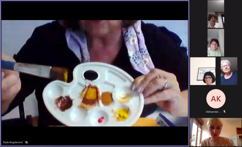 Razgovarali smo s tri sudionice koje su prvi put sudjelovale na radionicama u online formatu. Marija Biga, Ružica Margić i Marija Milić, odlučile su se sudjelovanje jer su željele naučiti nešto novo i, kako kaže gospođa Biga, naučiti kako se izraziti na likovni način. Ono što im se posebno svidjelo je društvenost na drugačiji način i stjecanje novih znanja o slikarstvu, poput korištenja boja.